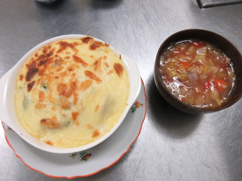 26日【よるごはん「シーフードドリアとミネストローネ」】