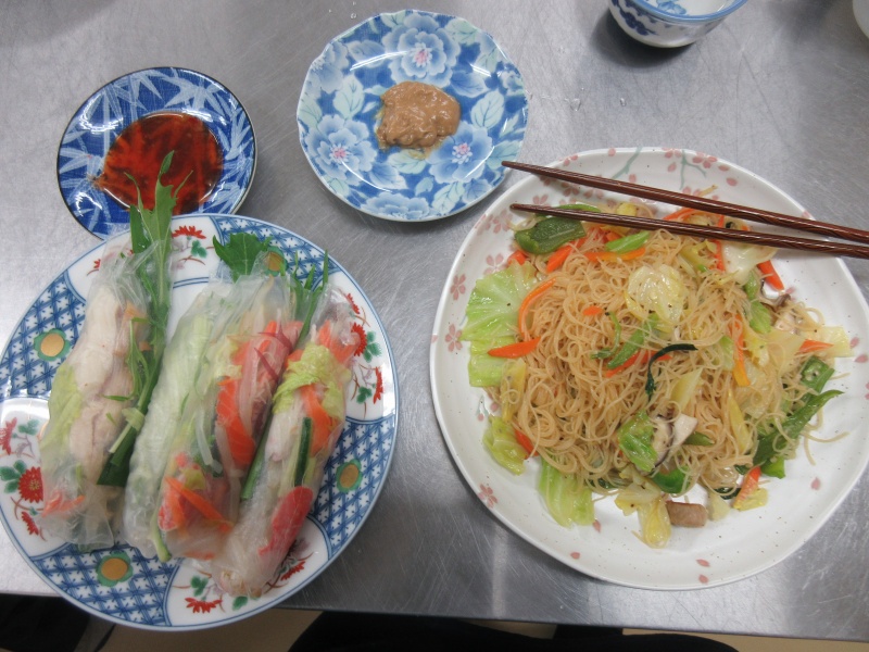 25日【よるごはん「焼きビーフンと生春巻き」】
