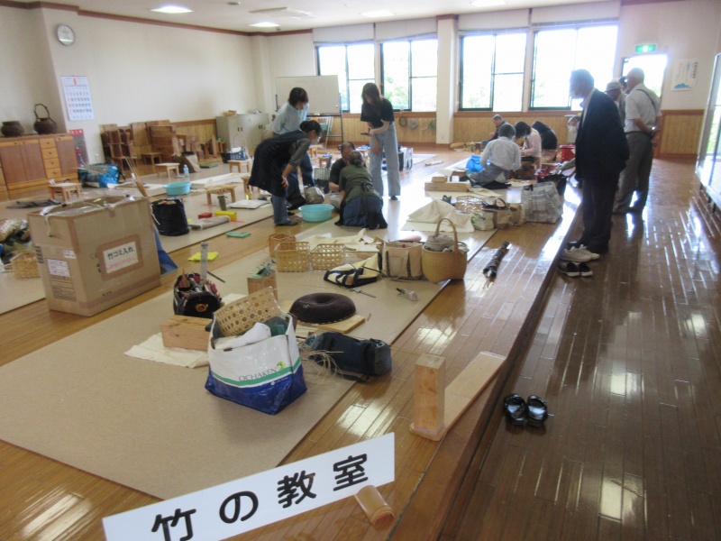 展示室を見た後に、2階の研修室で実際に竹を編んでいる教室の見学をしました。