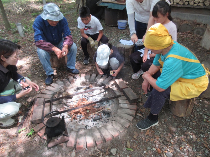 その後は杉の葉にマッチで火をつけ、枝を重ね火を起こしました。
