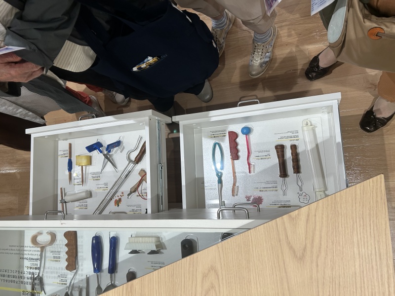 考えられた道具。また、関連企業の説明や障がい者スポーツ用の車いすなど