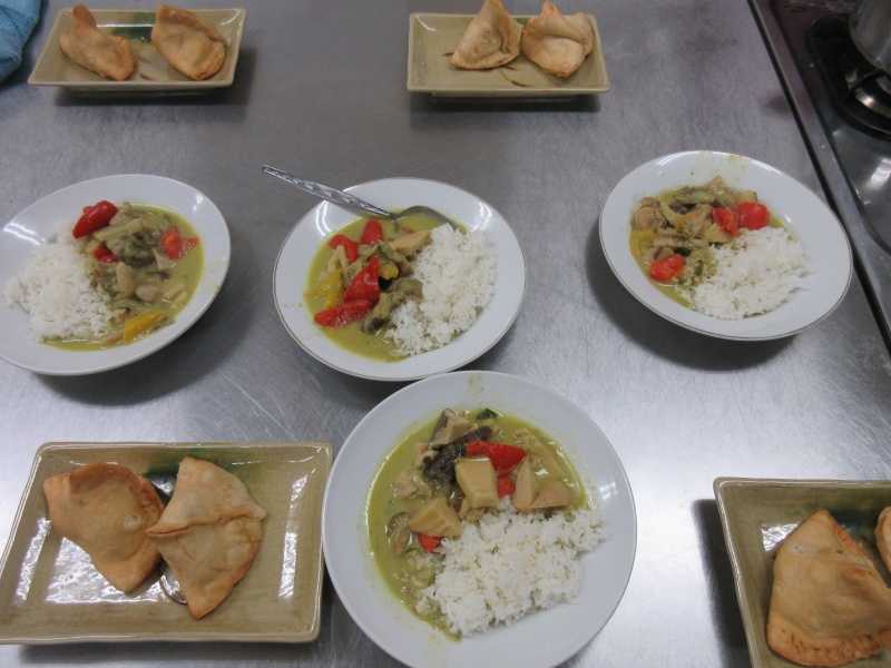 7月8日(月)によるごはん第3講としてグリーンカレーとサモサを作りました。