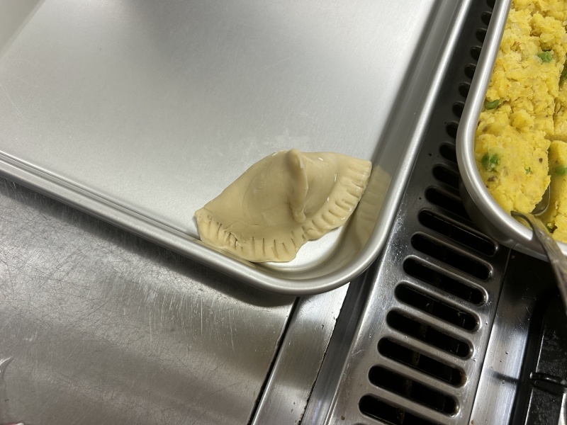 サモサは包み方が独特でみんなで苦戦しながら味付けしたじゃがいもを包みました。