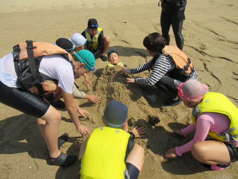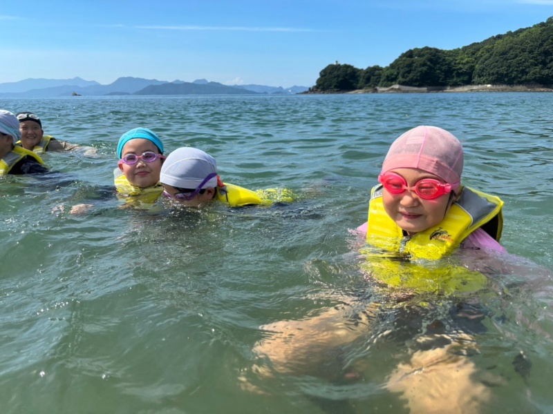 海水浴ではクラゲに刺されながらもみんな元気に海に入っていました。