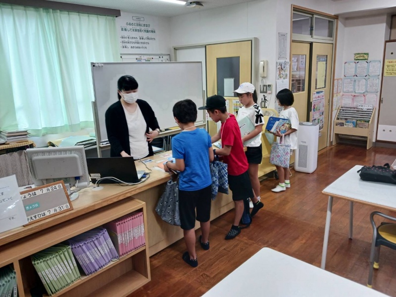 夏休みの課題だけではなく、図書室に本を借りに行ったり、学年混ぜての