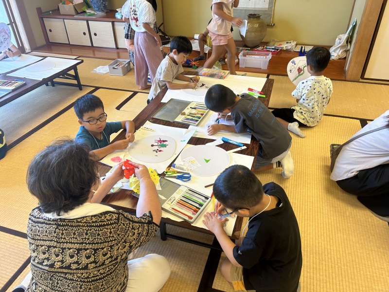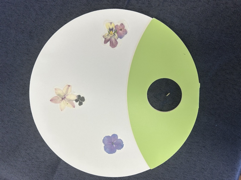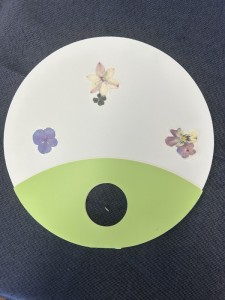 最後に先生が持ってきてくださった押し花で、団扇を作りました。
