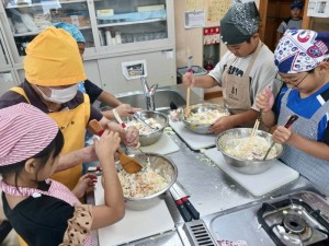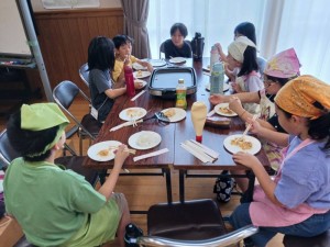 また20:如月会さんを講師に料理教室でお好み焼きを作ったり、(有)髙村木材の