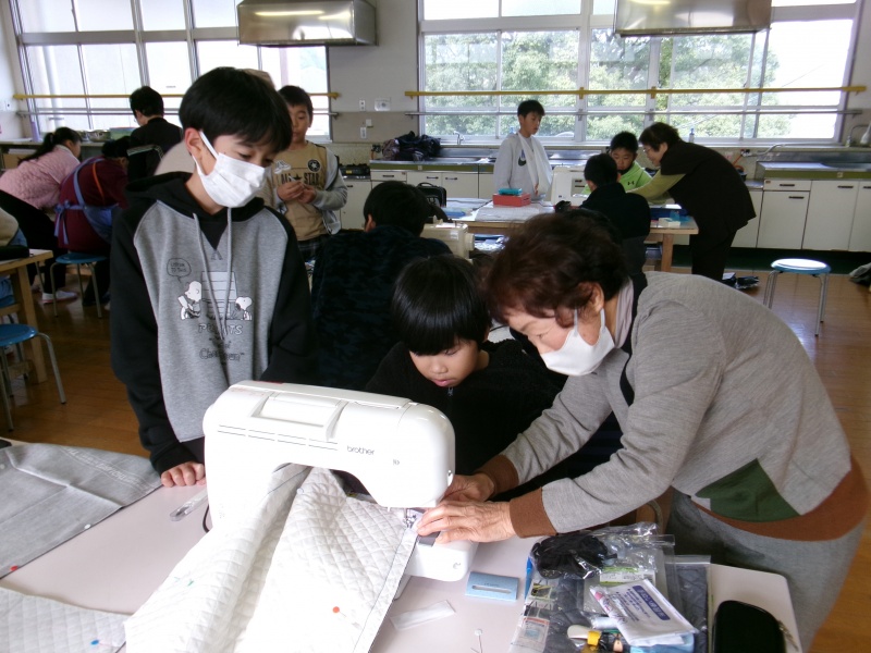 12月4.5.6日に地域学校協働活動として、5.6年生のミシン掛けのお手伝いに、
