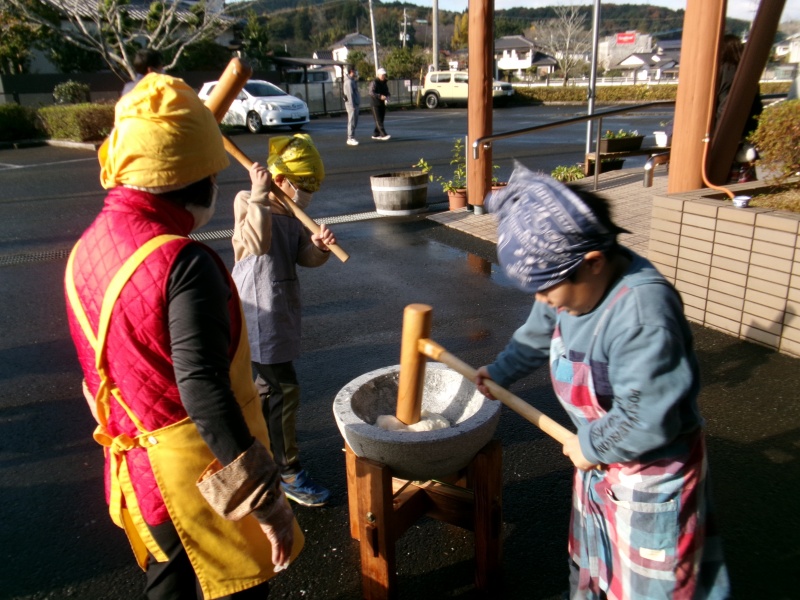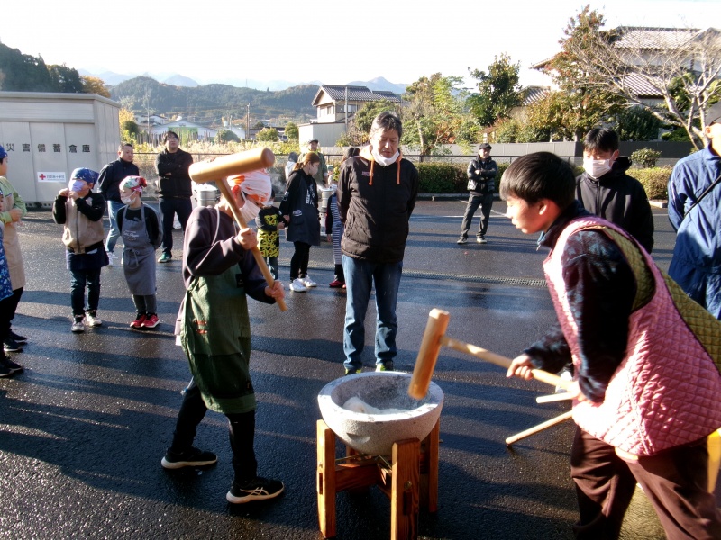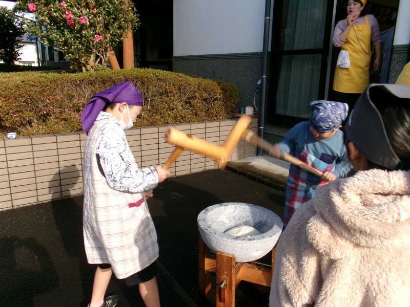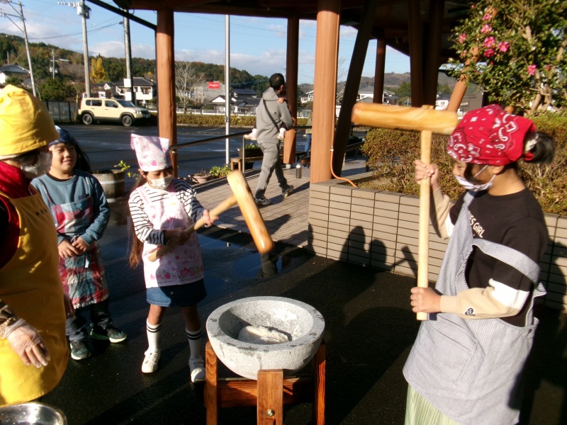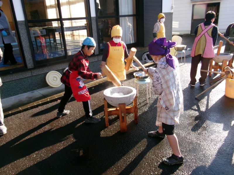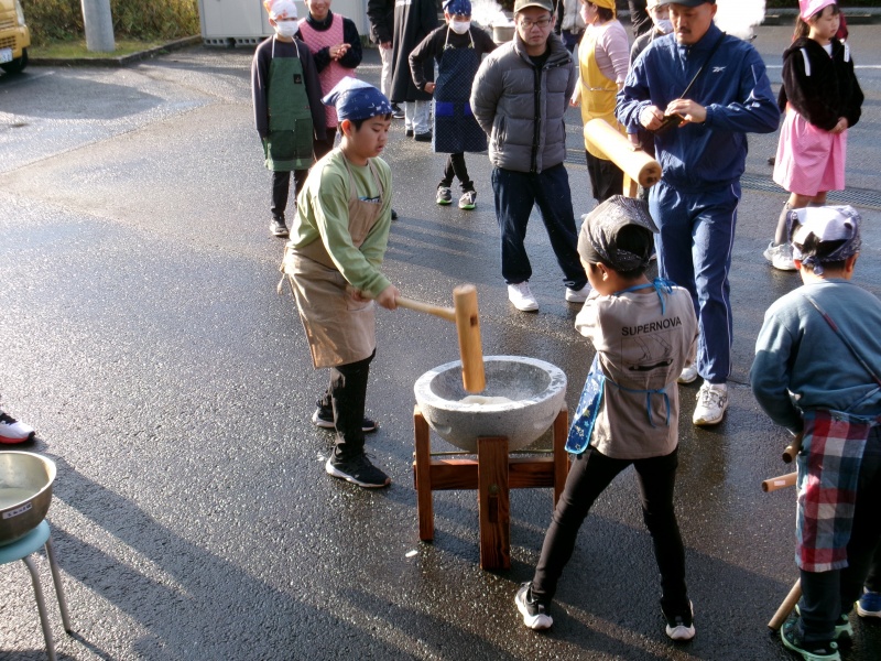 大きな掛け声で餅をついたり、丸めたりと元気な姿が見られました。