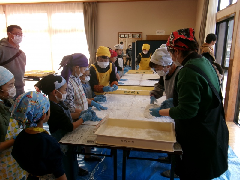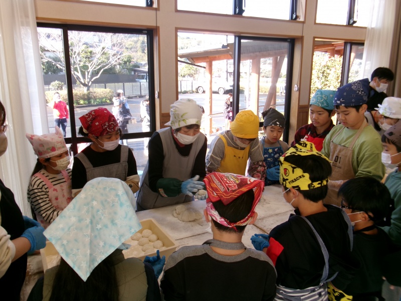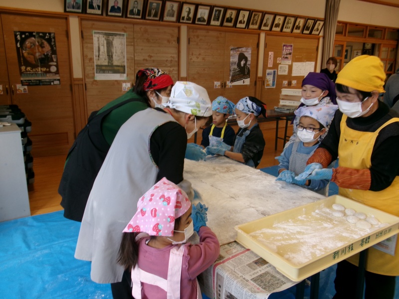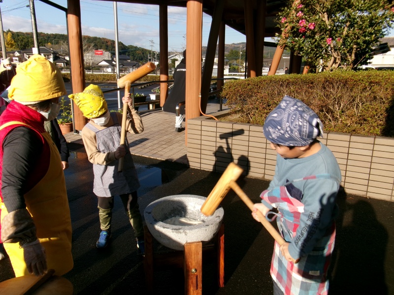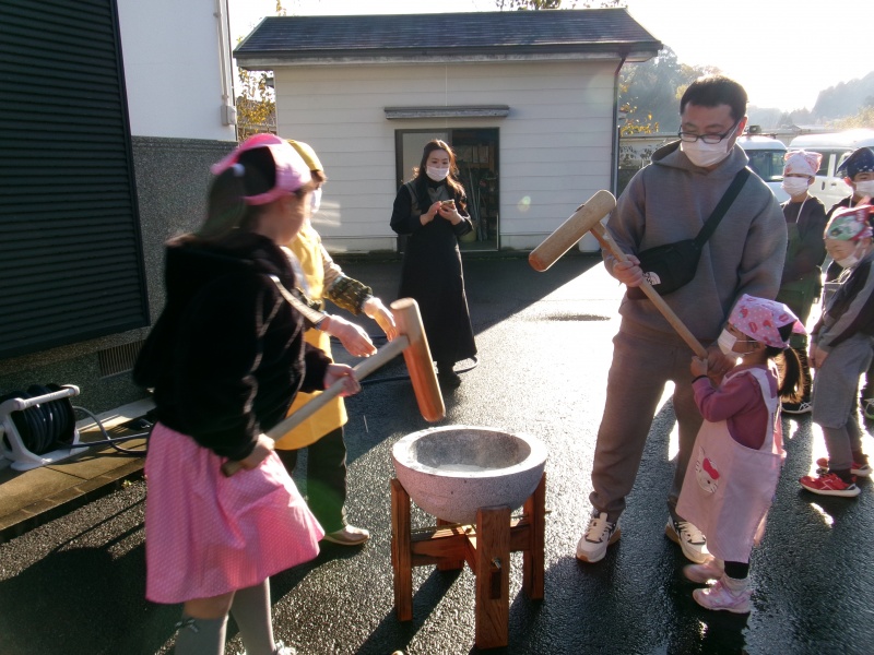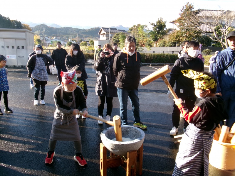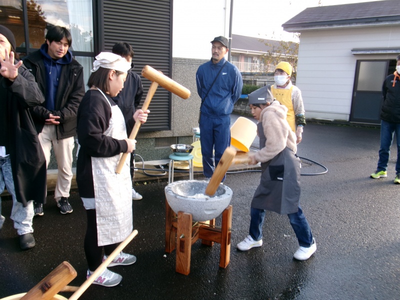 大きな掛け声で餅をついたり、丸めたりと元気な姿が見られました。