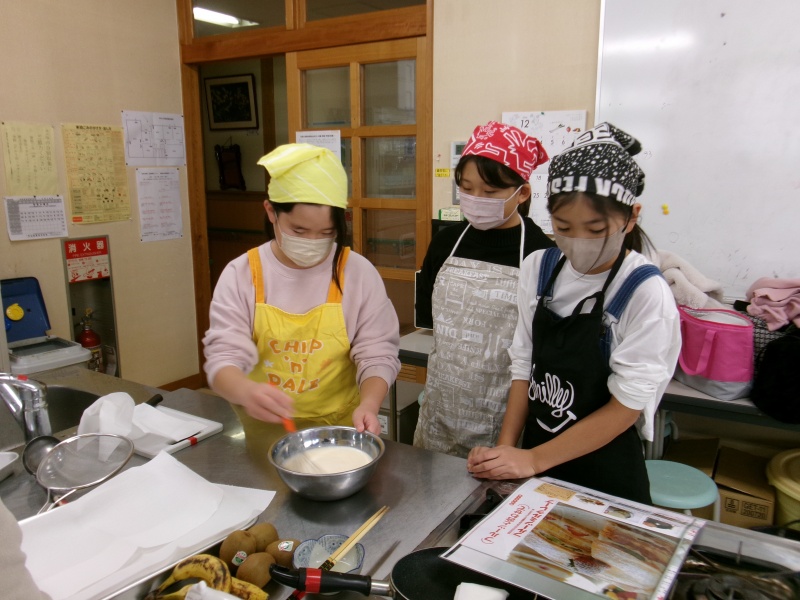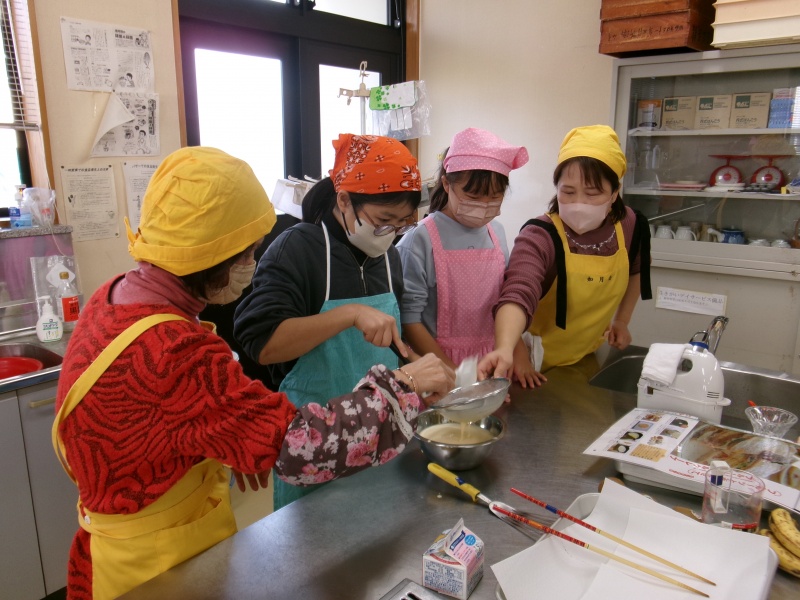行いました。ホットケーキミックスは一度ふるいにかけ、粉をさらさらにして