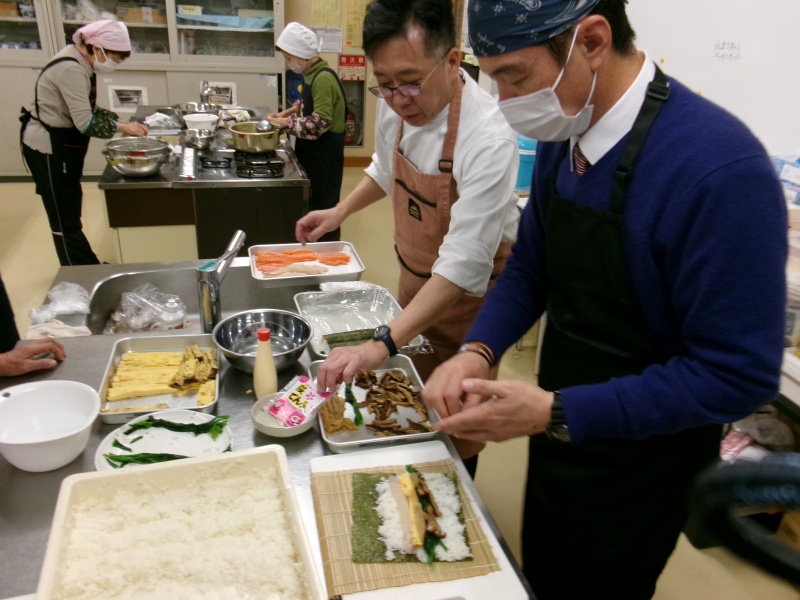 作りました。節分も近く、男性陣が巻物をしたことがないとのことで、