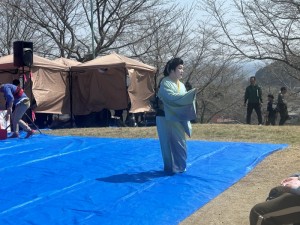 盛り上がる地元五和の一条さくら舞踊団による舞踊、日田もりあ下駄い