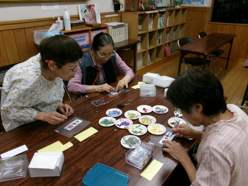お招きし、押し花を使ったミニティシュケース作りを行いました。