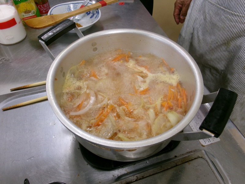 今回は桜エビを入れ、カレー粉、鶏がらスープ、牛乳、酢で味を整えました。