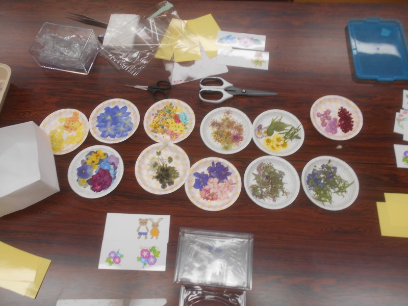 また色とりどりの押し花を準備していただき、選ぶのが難しいようでしたが