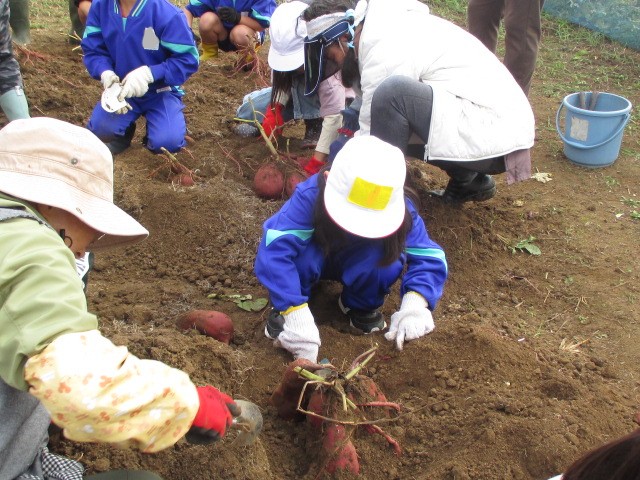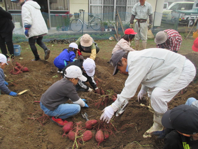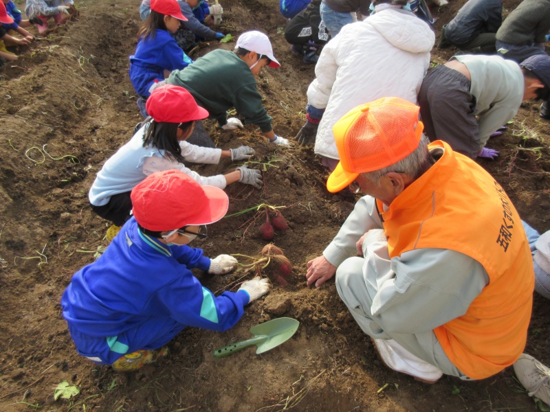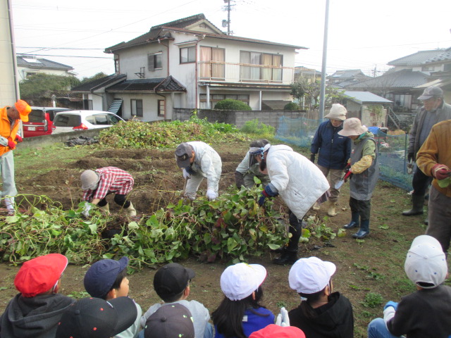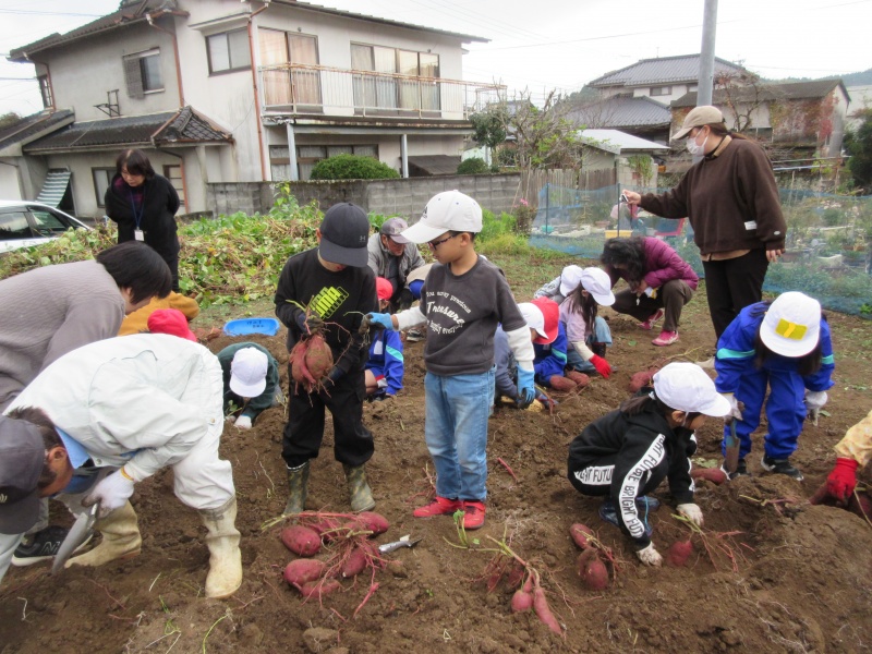 11月26日(水)に1.2年生の芋ほりのお手伝いに地域の方が10名参加くださいました。