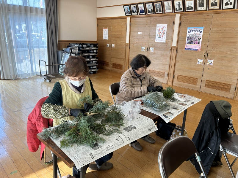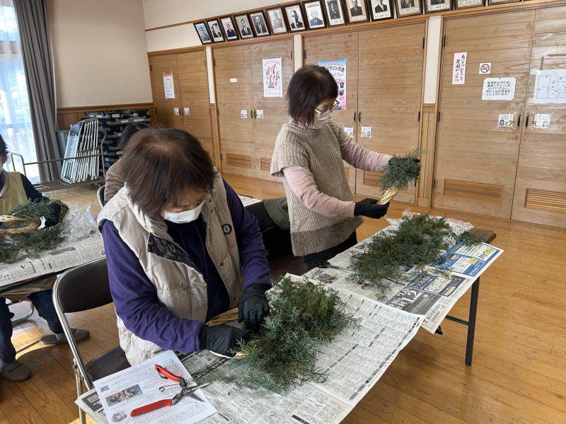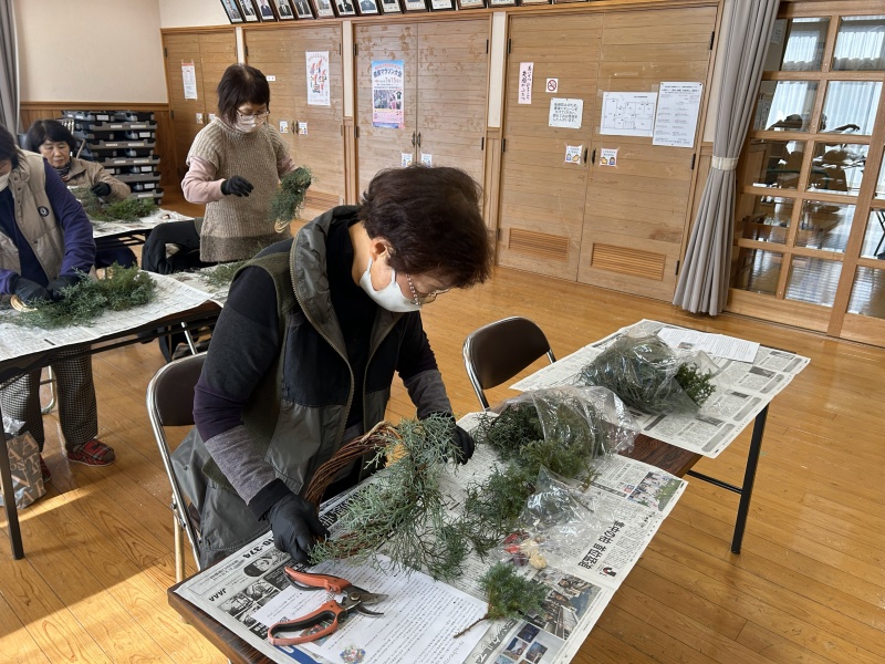 当日は、枝を巻いている骨組みを持ってきていただき、時計回りにさつま杉や