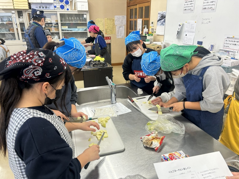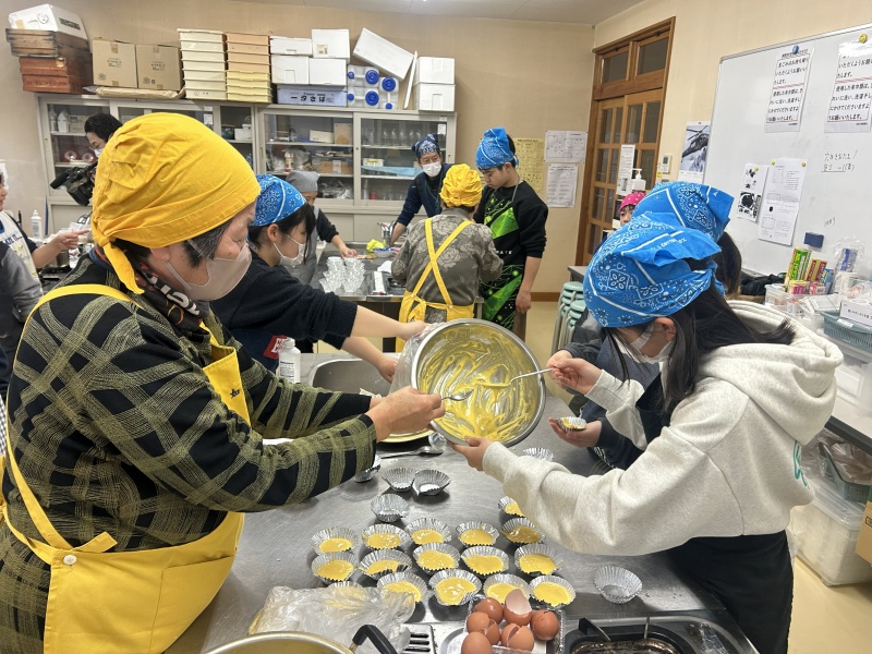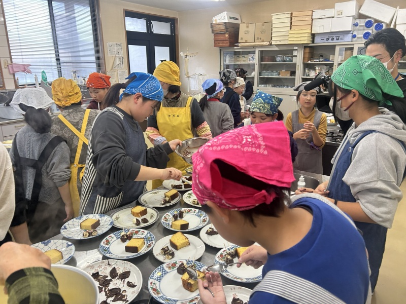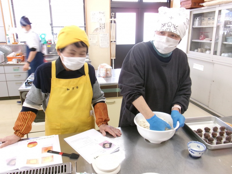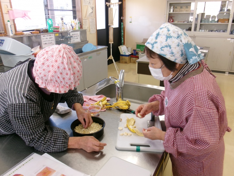 2班に分かれて、バナナプリンケーキと梅が枝餅を作ります。