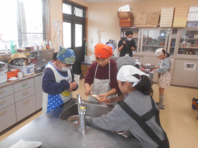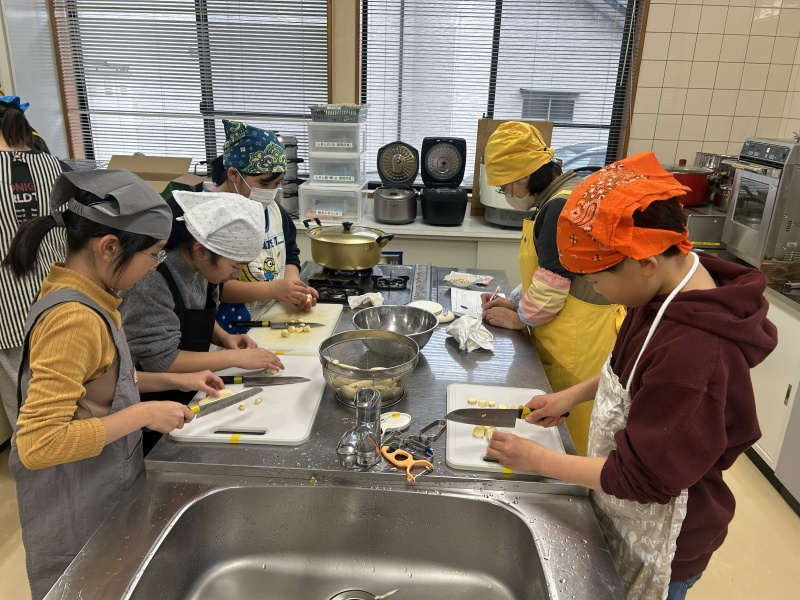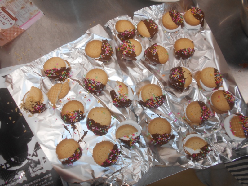 4年生女子は2班に分かれ、サツマイモトリュフとチョコマシュマロサンドと