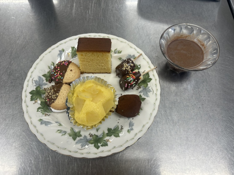 6年生女子がリンゴヨーグルトケーキを、男子がチョコプリンを