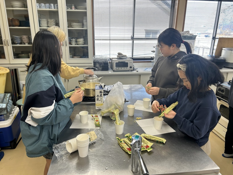 その後は、みんなでお菓子を使った防災食作りを行いました。