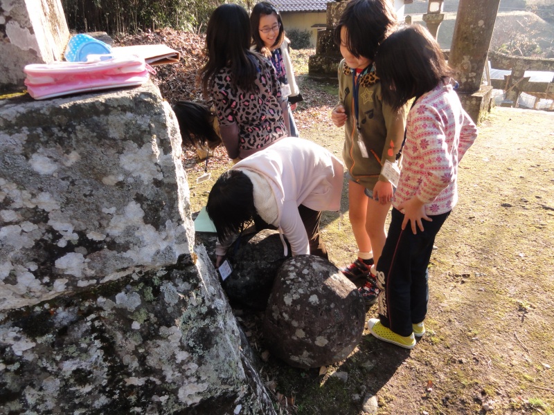 天祖神社は力石に挑戦しました。3年生が動かしました。
