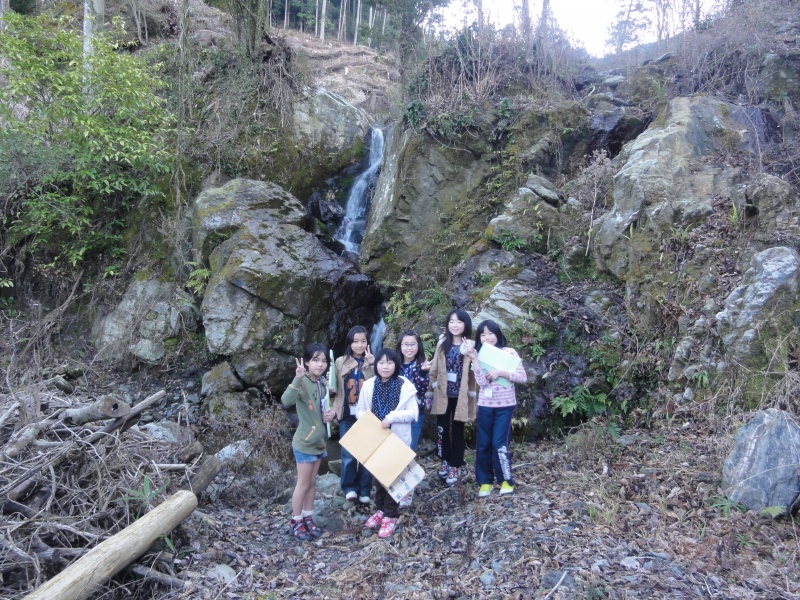 椚尾の滝,冬で水量が少ないです。左に有る倒木を片付けようと声が上がりました。