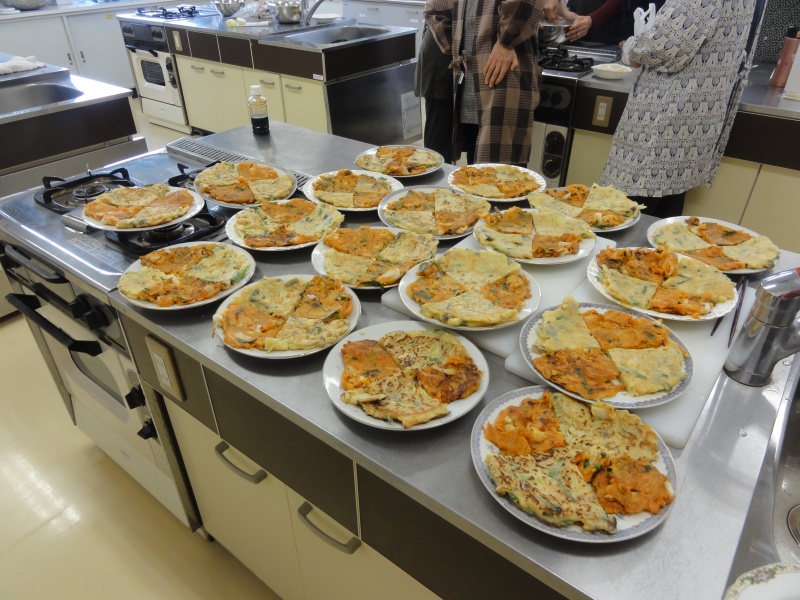 チヂミのレシピを持って帰りました。お家で作ってください。