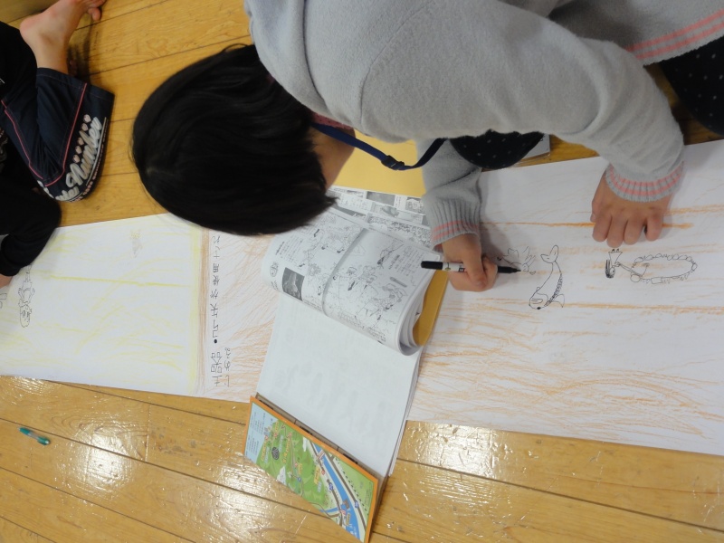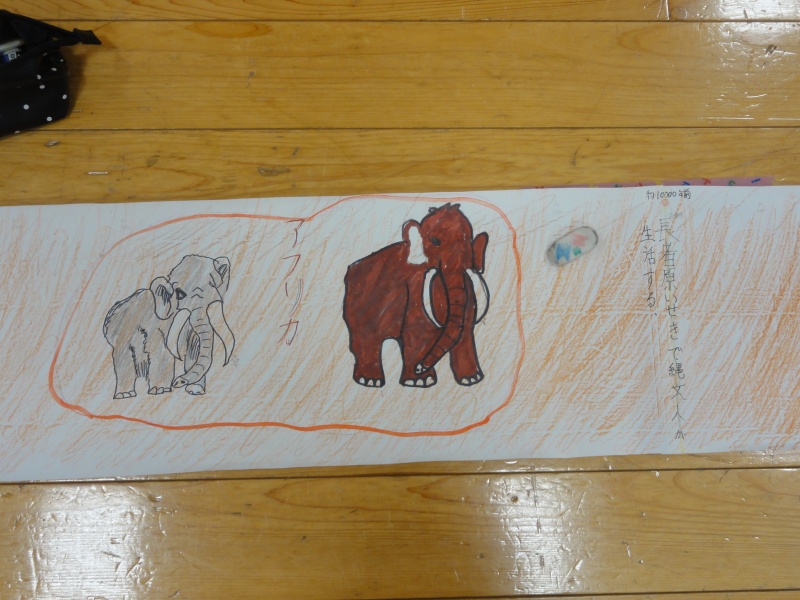 マンモスや鯨やいろいろなものを書き込んで賑やかになりました。