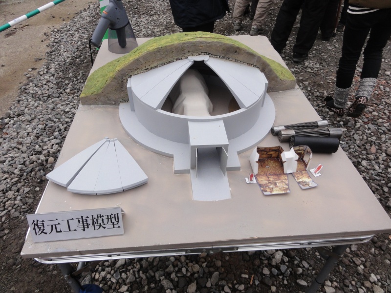 古墳を覆うようにドームが出来その上を1.2mの盛り土を行い古墳を