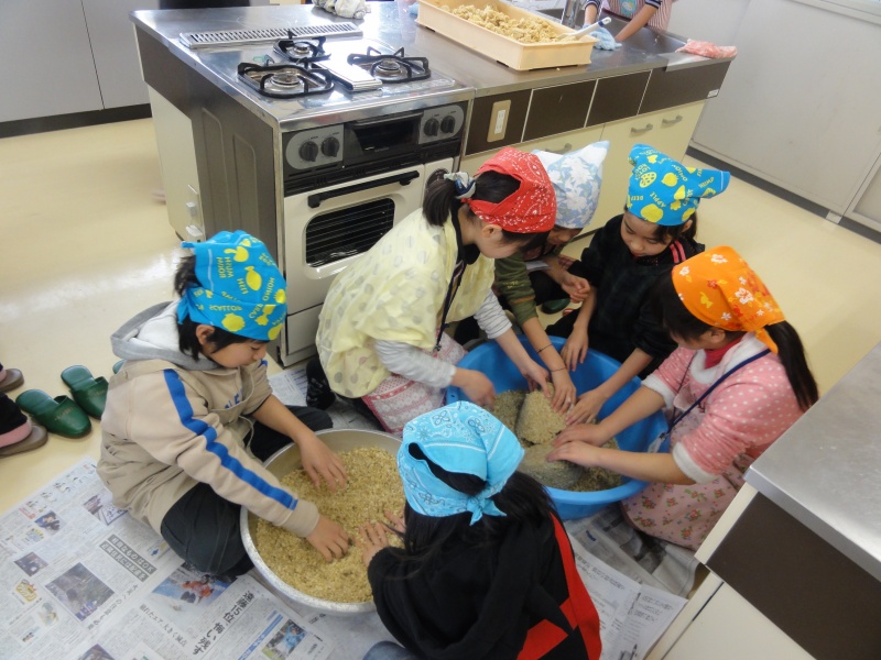 一人を除いて初体験でした。大豆を煮て、ミンチにして、麹を混ぜ合わせたのち