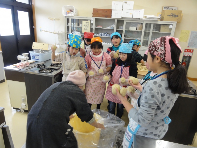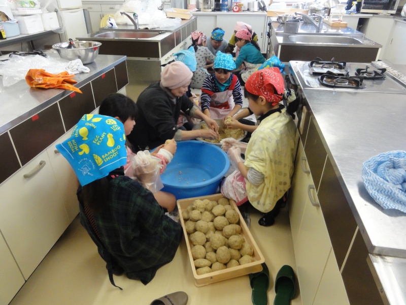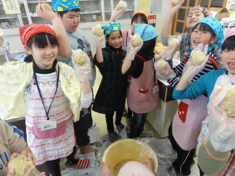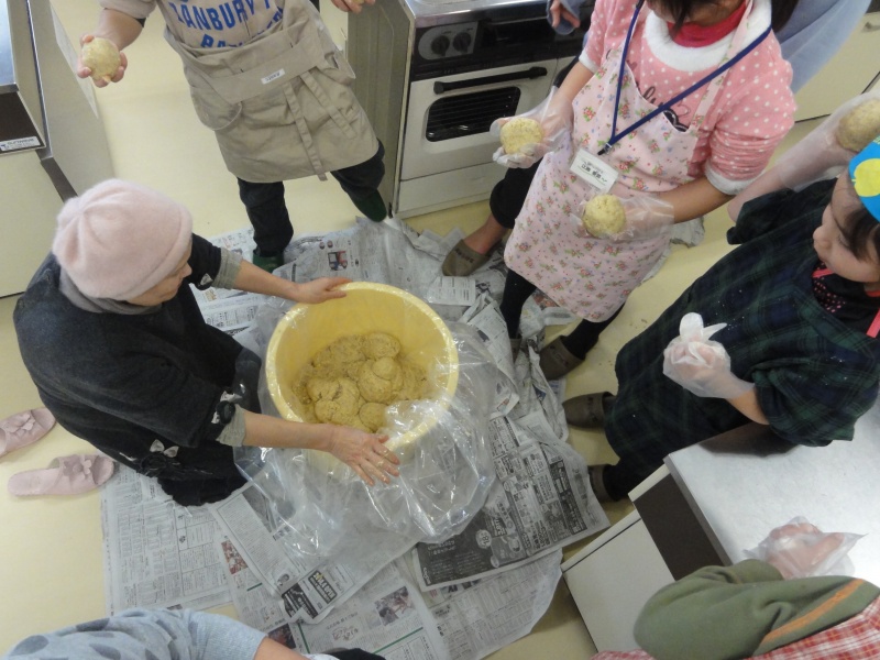 味噌球を味噌樽に元気良く投げ込みました。(この時が一番楽しそうでした