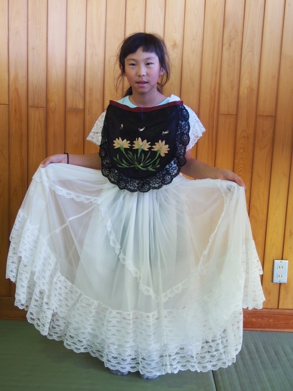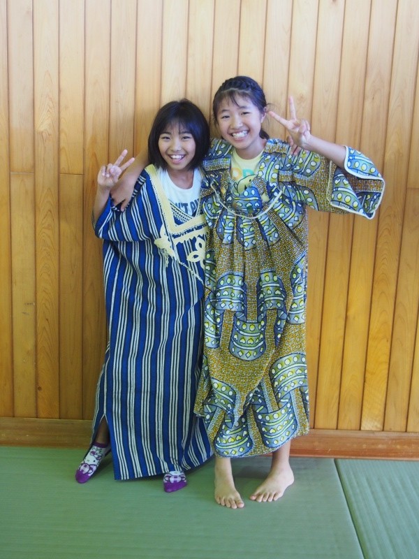 変身コーナーで、世界の国々の民族衣装に着替えました。