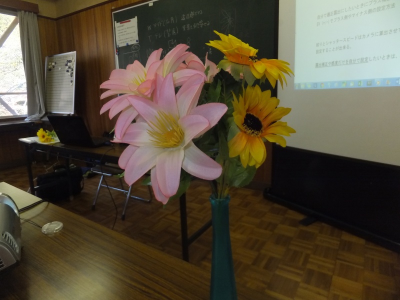 第2・3講は公民館においてデジカメの露出や感度の設定や撮影の際の構図等を学びました。造花の撮影ですが、露出を変えるとこんなにも違います。