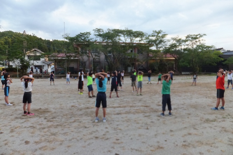 プレ練習は練習に入る前の準備段階(整列やあいさつ、準備体操等)を練習します。