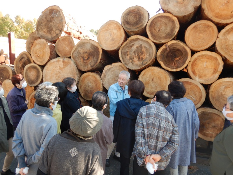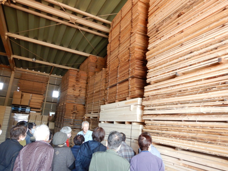 続いては、日田下駄に必要な木材を切り出す製材所を見学。