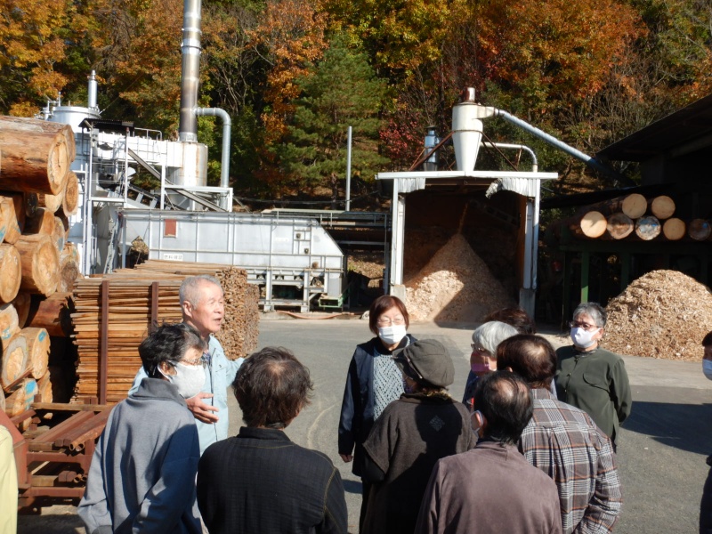 丸太を製材するときにでるのこくずは焼却し、その熱のエネルギーを利用して木材を乾燥し、冬場の暖房にするなどリサイクルをしているそうです。