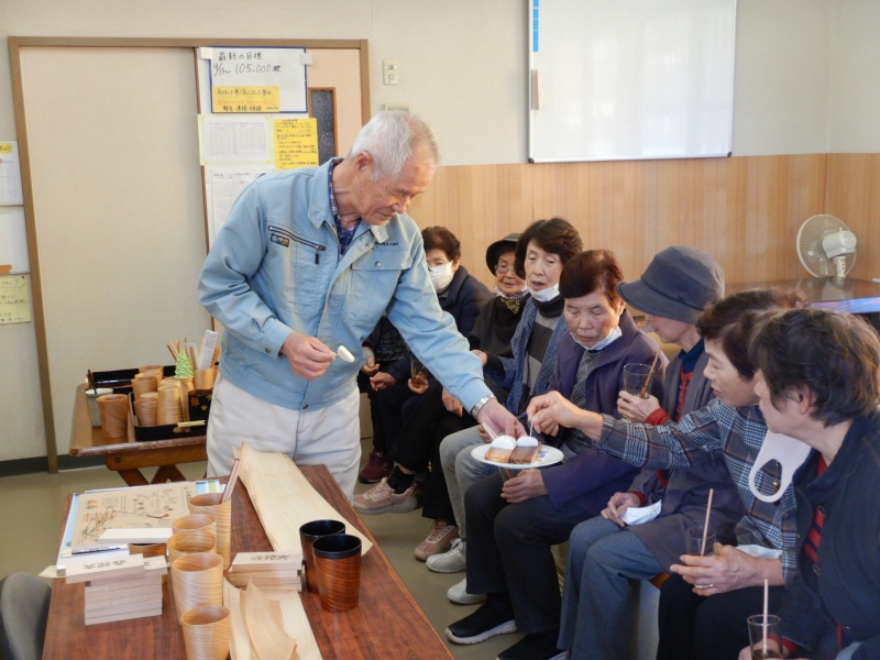 さらに髙瀬文夫商店では、薄く削った日田杉を使って木製のコップやストローづくりも行うことで、最近よく耳にするSDGsにも取り組んでおられるとの事でした。