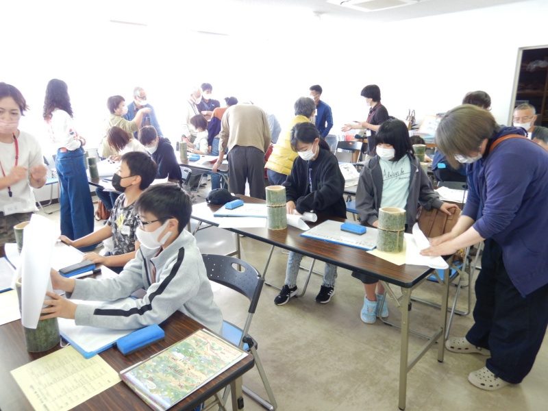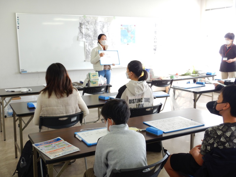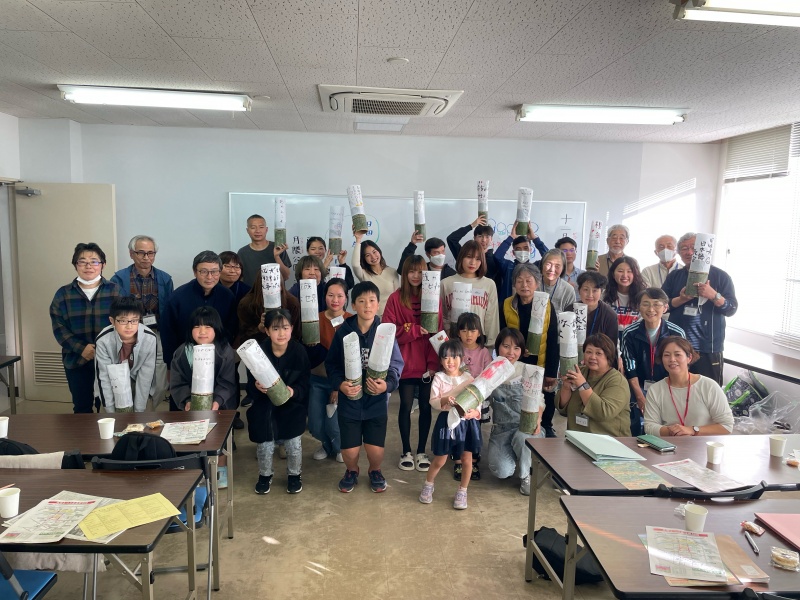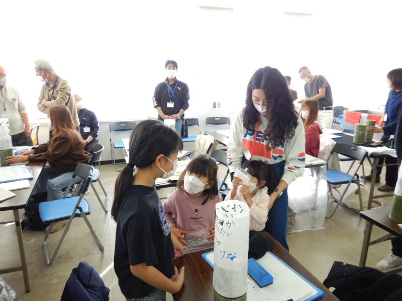 今回は「国際理解活動」として、アオーゼで月2回開催されている日田日本語教室で学ばれている外国人の皆さんとの交流活動を実施。11月11日から(金)から行われる「天領日田千年明かり」に飾る竹灯籠づくりを一緒に行いました。