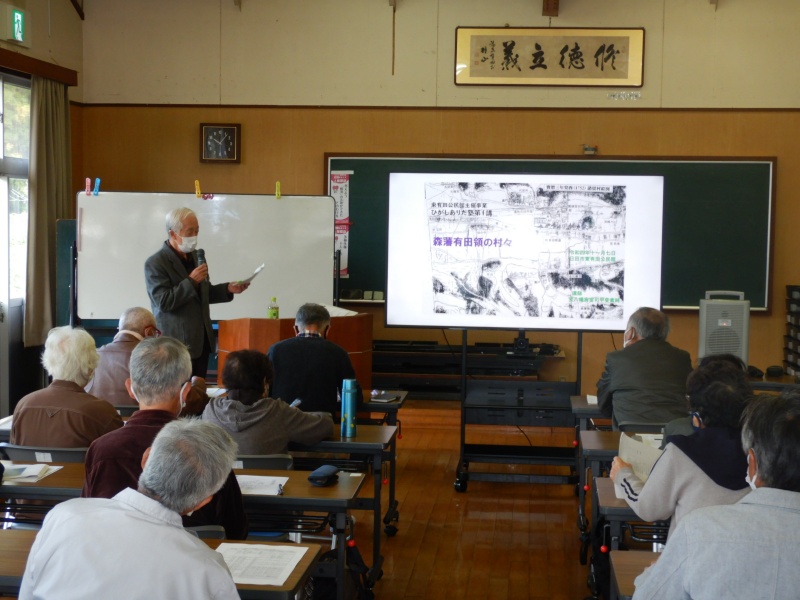 講演では、たくさんの貴重な資料から、豊後国における当時の森藩の情勢と森藩の中の有田領の位置づけなどをお話しいただきました。