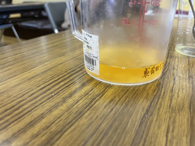 果汁の割合によっていろんな種類のオレンジジュースが市販されています。実験では100%のオレンジジュースを使って果汁20%のオレンジジュースを作ってみました。
