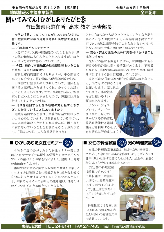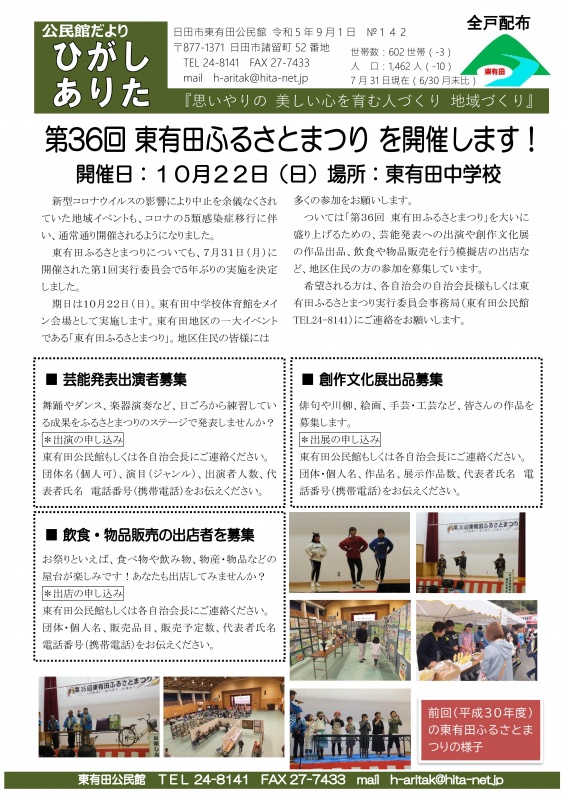 『公民館だよりひがしありた』第155号を令和7年11月1日付けで発行しました。