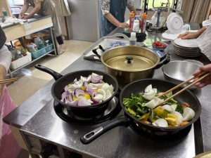 第1講、始まる前に、すでに調理をし始めていました・・。