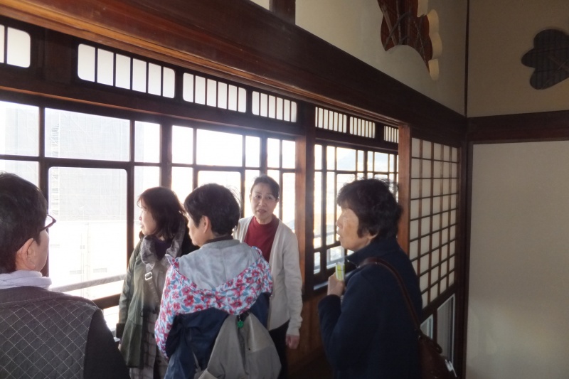 始めの研修地は門司の三宜楼茶寮。九州に現存する最大級の三階建て木造建築で、かつては料亭として使われ、出光佐三や高浜虚子など数々の著名人が利用した由緒ある建築物です。職員の案内を聞きながら建物内を見学して回りました。