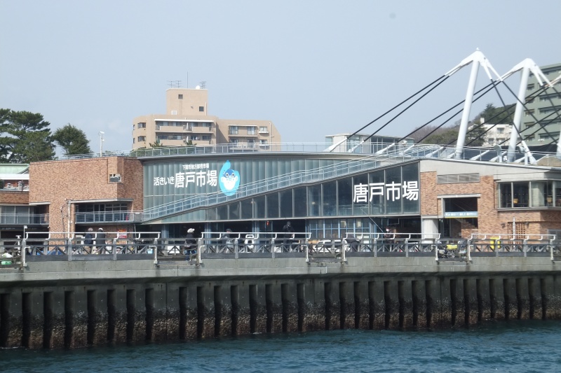 下関では、唐戸市場で買い物を楽しみました。新鮮な魚介類がたくさんあります。