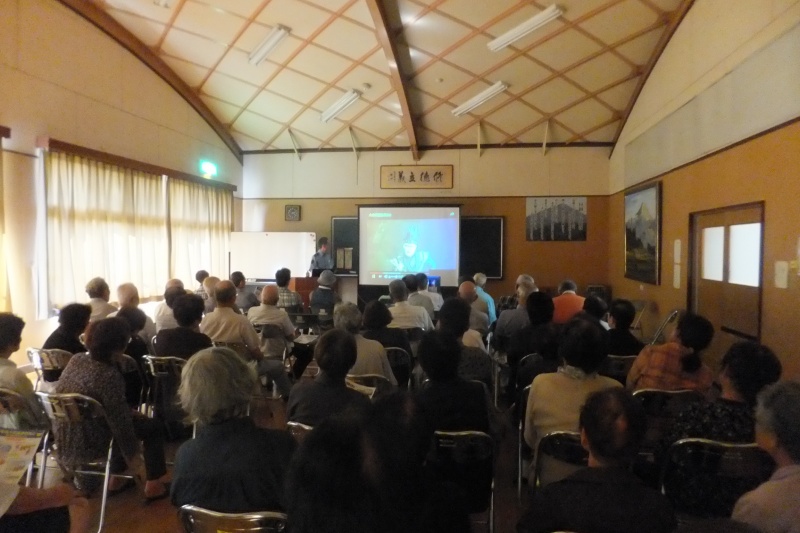 講話後は大分県警が作成したデーモン小暮出演の特殊詐欺啓発ビデオを見ました。