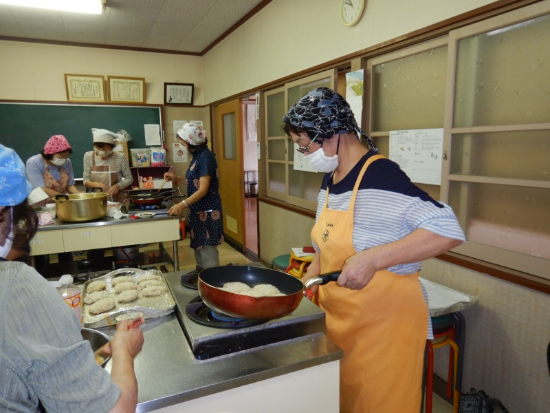今年度は新型コロナ対策のため、調理室には6名までしか入れませんので、2班に分かれての調理です。そのため簡単な料理しかつくれませんが、皆さん熱心に作っています。