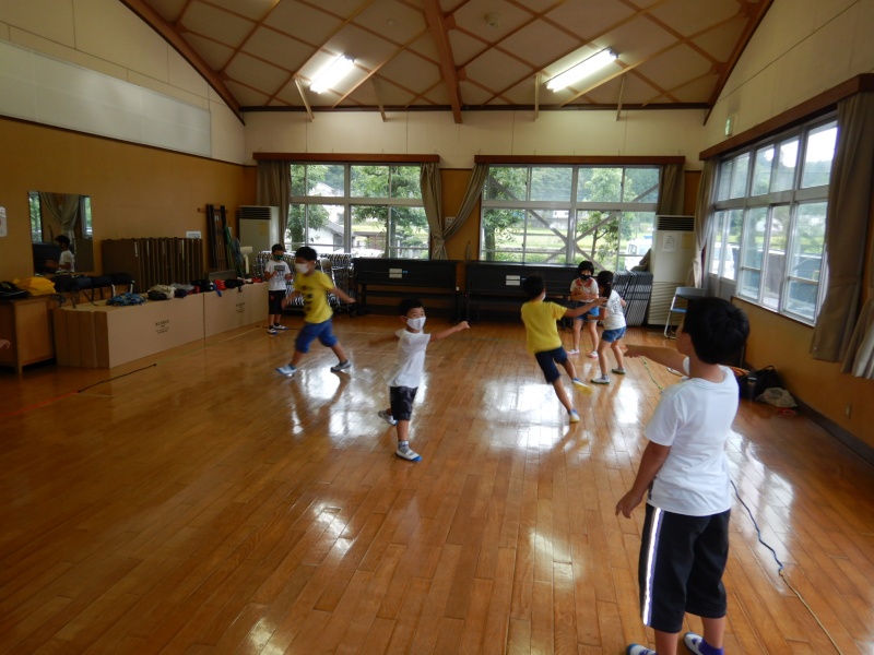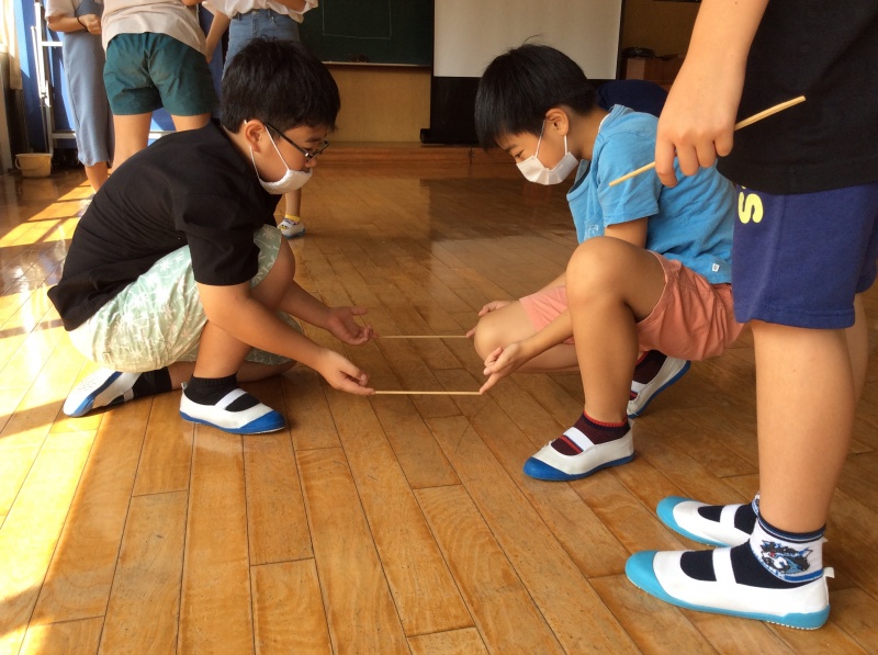 様々なゲームを通して、ただ楽しむだけでなく、仲間との協力や思いやり、達成したときの喜びなどを、自分の身体で体験して学習しました。みんな、楽しそうにいろんなゲームにチャレンジしていました。