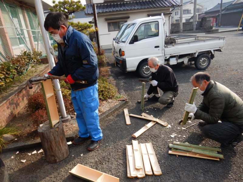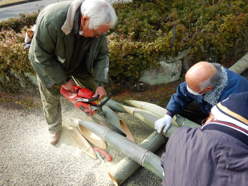 竹は長尾さんが提供して頂き、みんなで力を合わせて作ります。